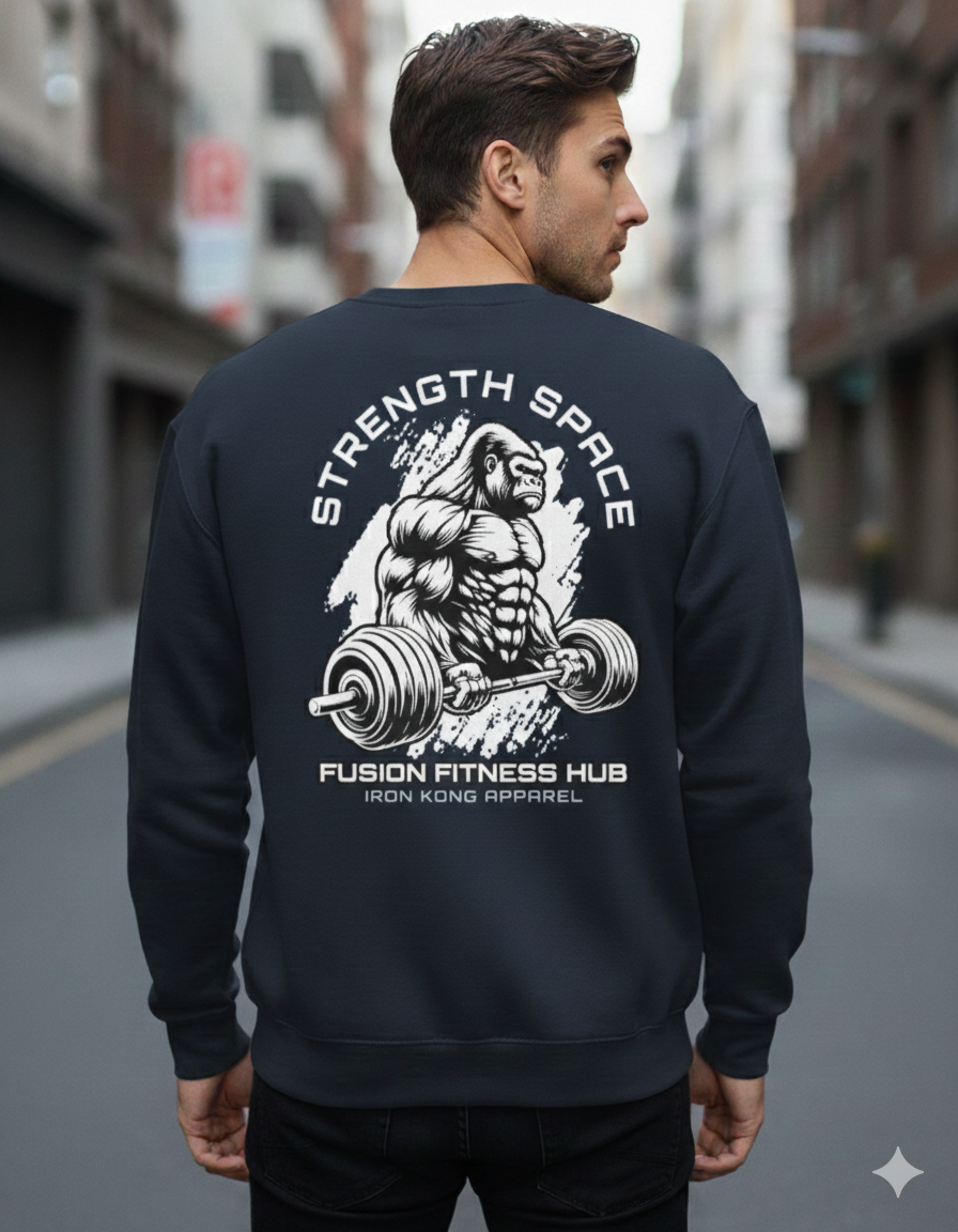 The Primal Gorilla graphic sweatshirt features an angry gorilla illustration on the front and a back graphic of a gorilla lifting weights. Designed with bold artwork and a modern streetwear fit, this sweatshirt is made to stand out while remaining versatile for everyday wear.